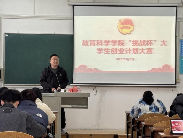 (通讯员 胡诗睿)为激发大学生科创热情,锤炼实践创新能力,助力青年学子成长为高素质创新型人才,3月9日,教育科学学院(以下简称“教科院”)于5407举办第十六届“挑战杯”院赛,教科院全体辅导员及各团队参赛人员参与本次活动,25级小学教育2班张思怡担任主持人。