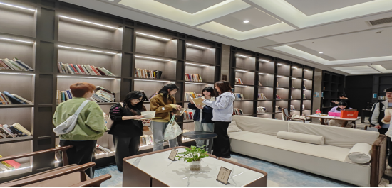 研学首站,同学们参观超星阅读休息室,沉浸式体验数字阅读与纸质阅读融合的阅读模式,感受浓厚的学习与教研氛围。随后,在工作人员带领下,大家依次观摩智能交互一体机、数字图书馆终端、三维知识图谱工具等先进教育产品与学习设施,深入了解各类设备的功能特性与基础教育应用场景,拓宽对数字化教育的认知视野。